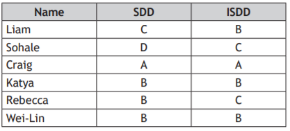Mrs McColl is a computing teacher who creates a program to grade her pupils' work. Mrs McColl's students have had two tests, one in Software Design and Development (SDD) and one in Information Systems Design and Development (ISDD).